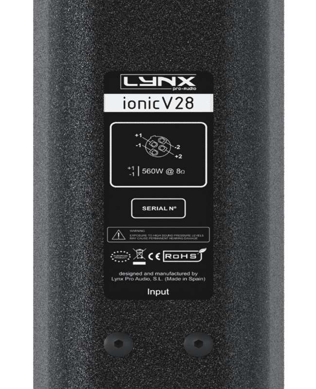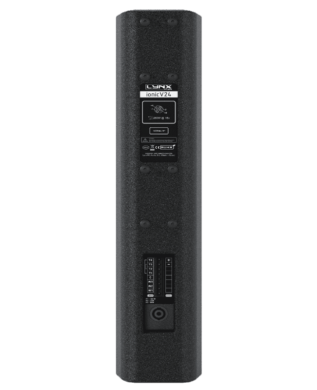 8 x 4″, a 1” HF driver, 100º H x 25º V, 560W, 132 dB peak
